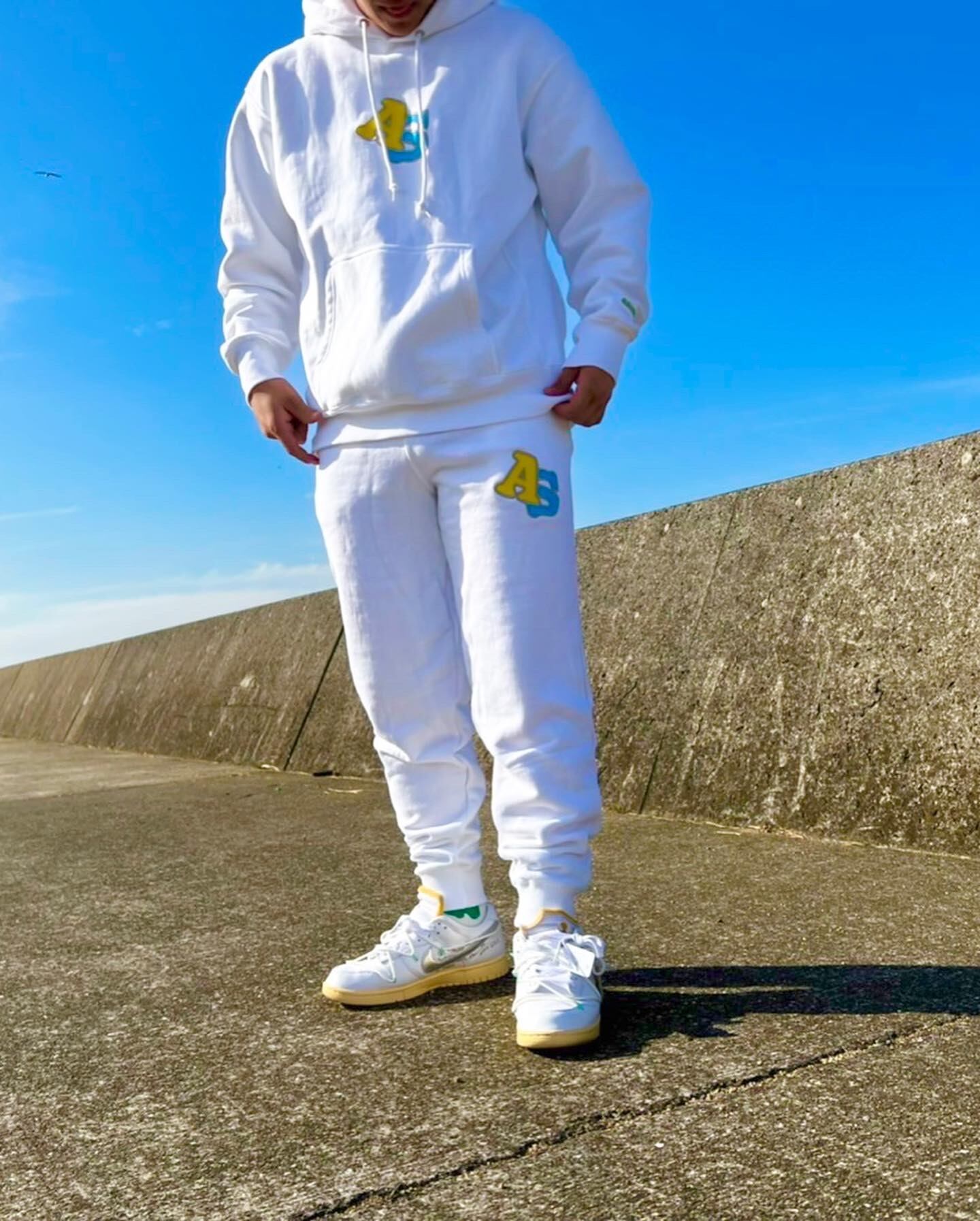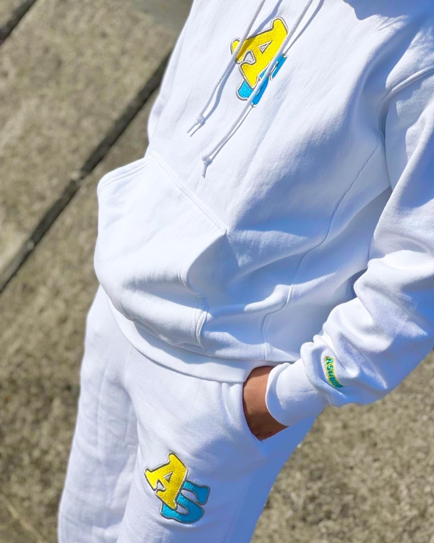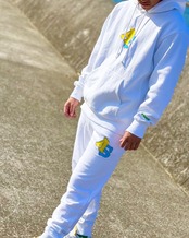 ポップなイニシャルロゴを刺繍で大きく落とし込み高級感もあります。パーカーの左袖にはASOBININの刺繍も付けて細部までこだわりました。12ozの厚めの生地でボディ裏起毛なので暖かいです。スウェットパンツは袖リブで足元が締まりシルエットが綺麗にでます。裏パイルの為春、秋など長い期間ご着用いただけます。